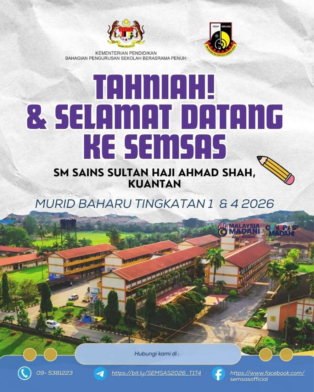 PENDAFTARAN MURID TINGKATAN 1 dan 4 TAHUN SEMSAS TAHUN 2026